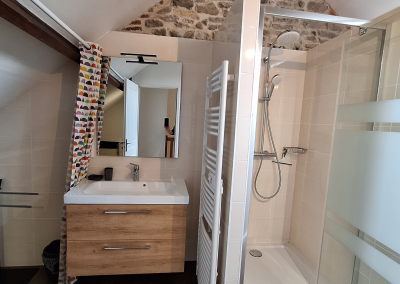 Beide slaapkamers hebben een aangrenzende eigen badkamer met douche en toilet. Bovendien is er op het gelijkvloers nog een extra apart toilet.